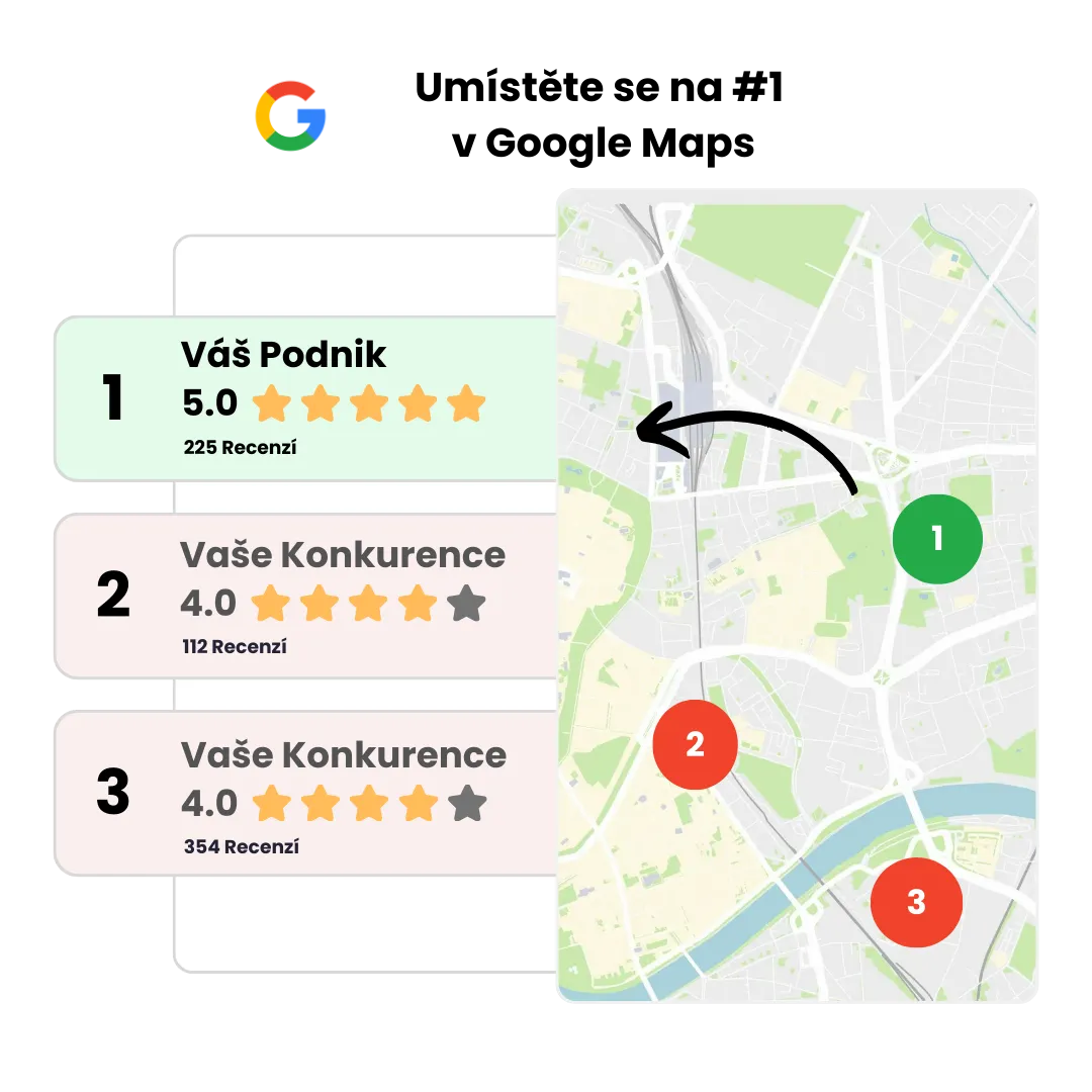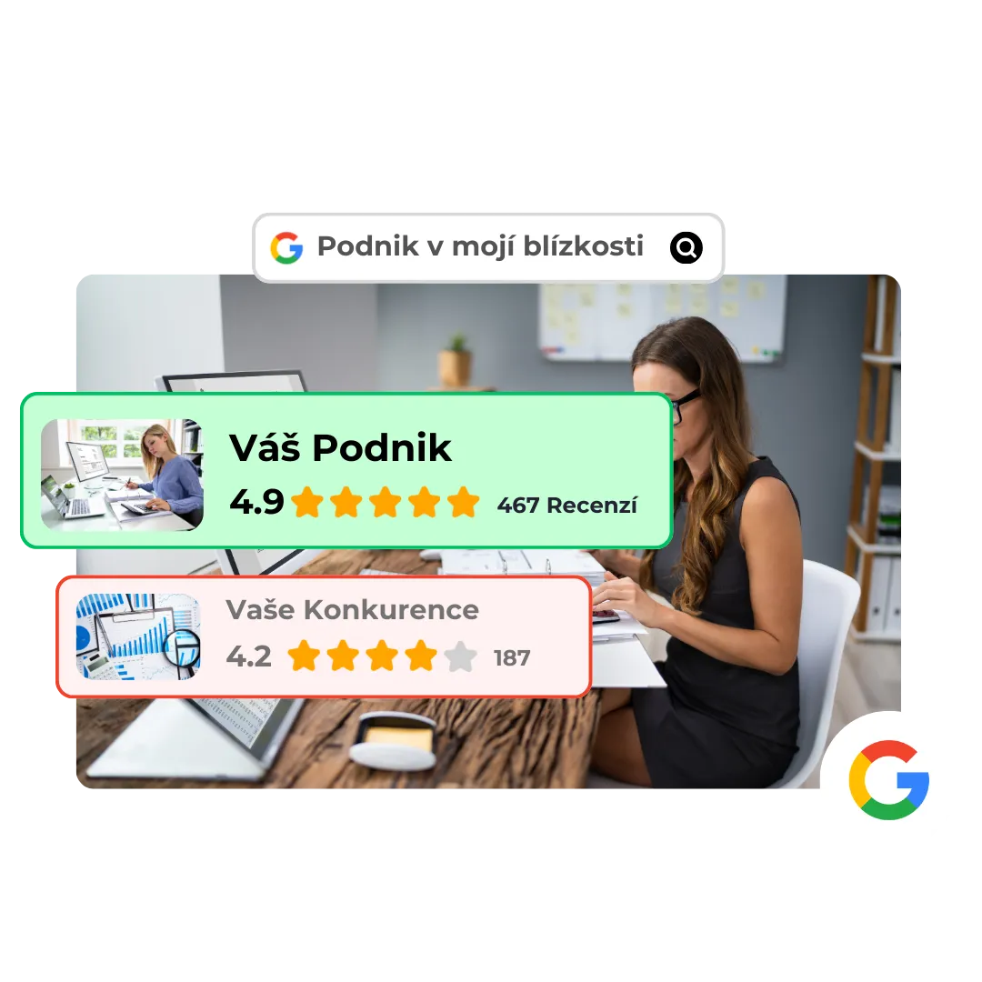 Google recenze zlepšují vaši online reputaci, zvyšují viditelnost ve výsledcích vyhledávání, budují důvěru u potenciálních zákazníků a pomáhají přitahovat více návštěvníků a prodejů do vašeho podnikání.
